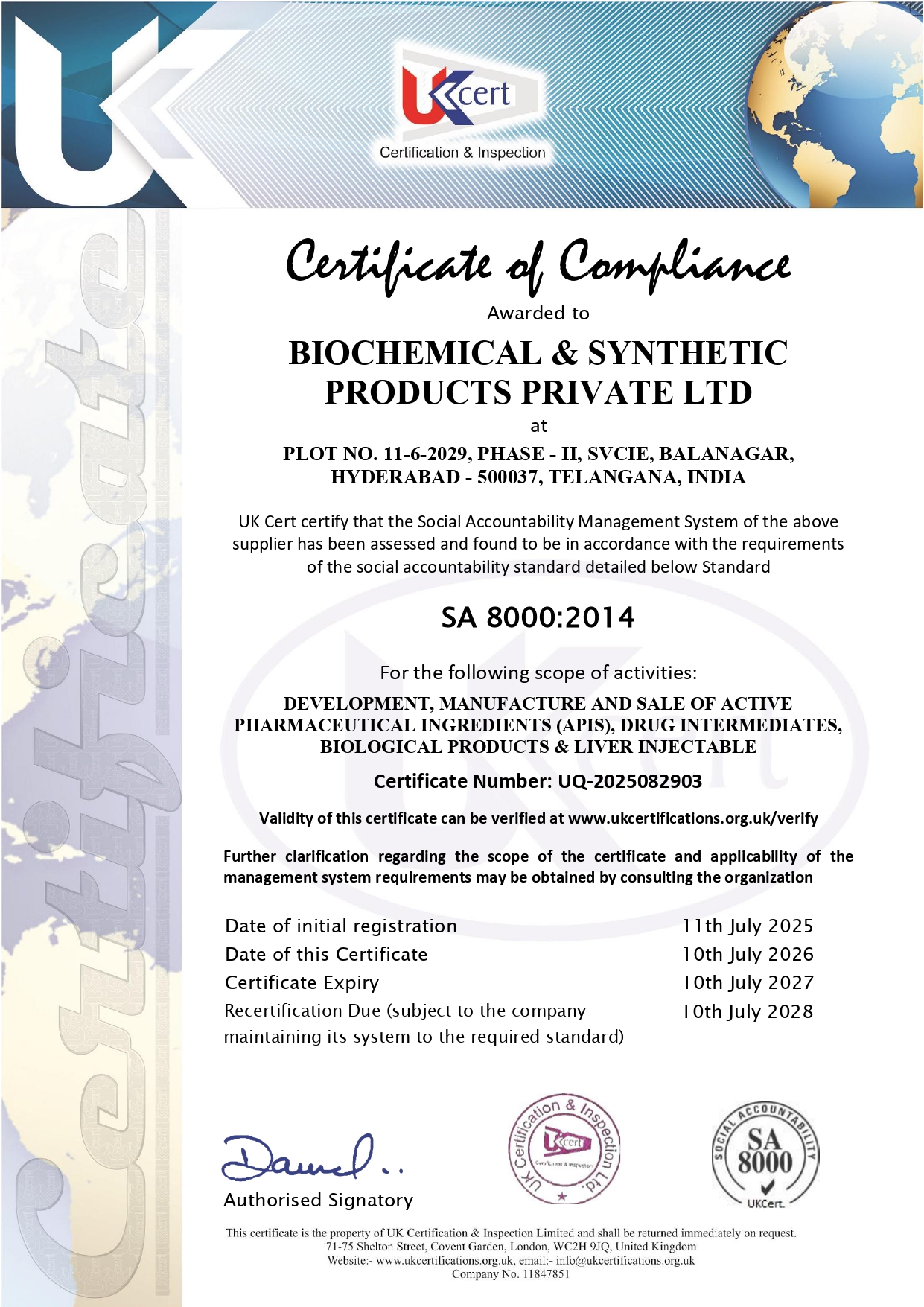 While India took steps to glorious independence, our visionary founder, imagined a nation of ‘accessible and affordable’ healthcare. Set up in 1943, Biosynth was one of Hyderabad’s premier pharmaceutical companies that rewrote the history books, once and for all. Today, Biosynth is a company that successfully delivers the latest generation molecules while ensuring the highest quality. We began by manufacturing Biological products, employed in injections and vaccinations before migrating to lifesaving TB products with PAS sodium, an API that is still our trump card. We also made rapid inroads into diverse therapy areas and quickly entrenched ourselves as an export house in the late 1900s. In 2020, a society of technocrats have taken up the mantle to grow Biosynth into an Intermediate and API player of world stature. Sole mission: Offering products that stand for high quality and advanced chemistry.